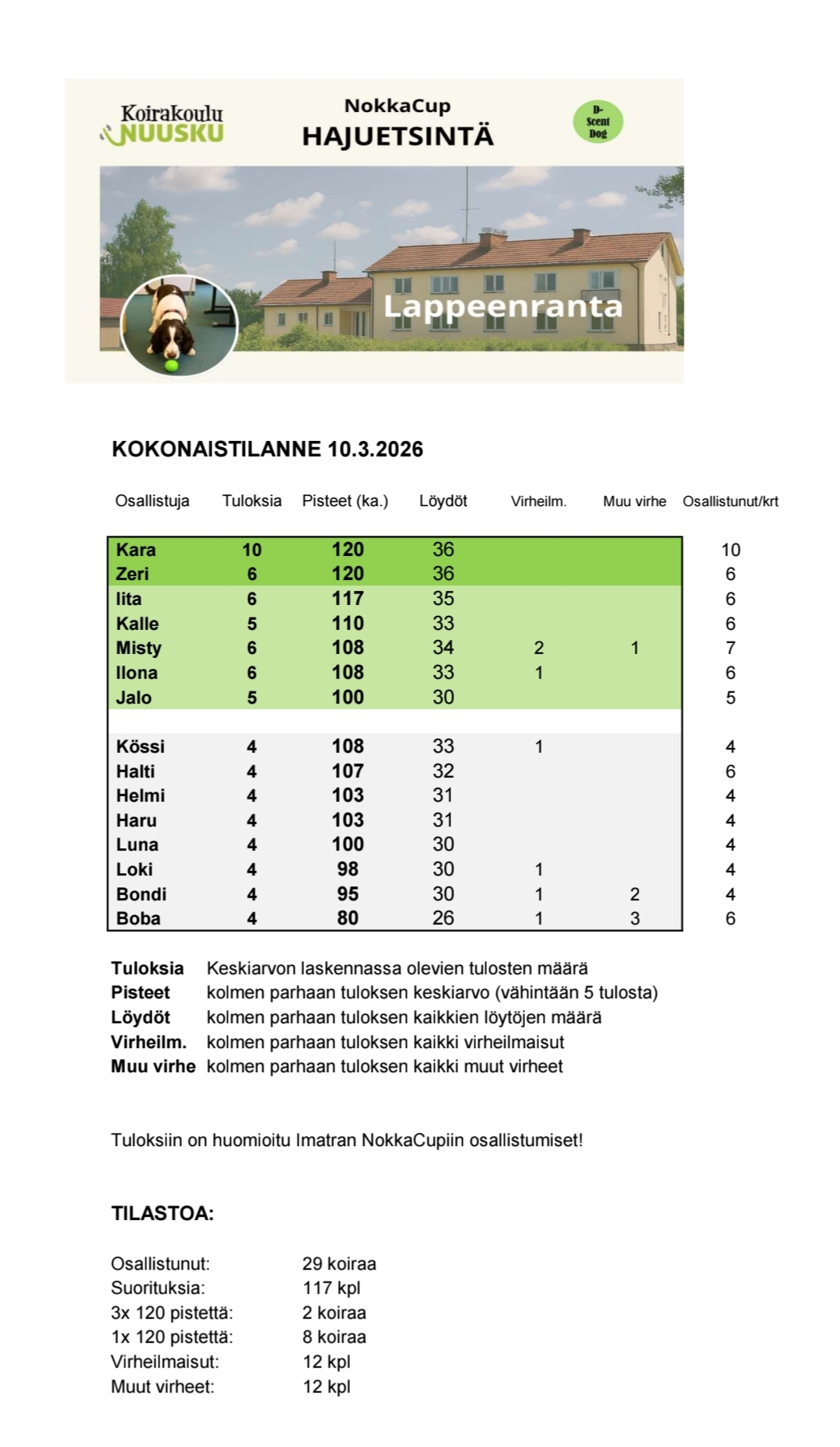 Tapahtuman järjestävät yhteistyössä Koirakoulu Nuusku ja D-Scent Dog.